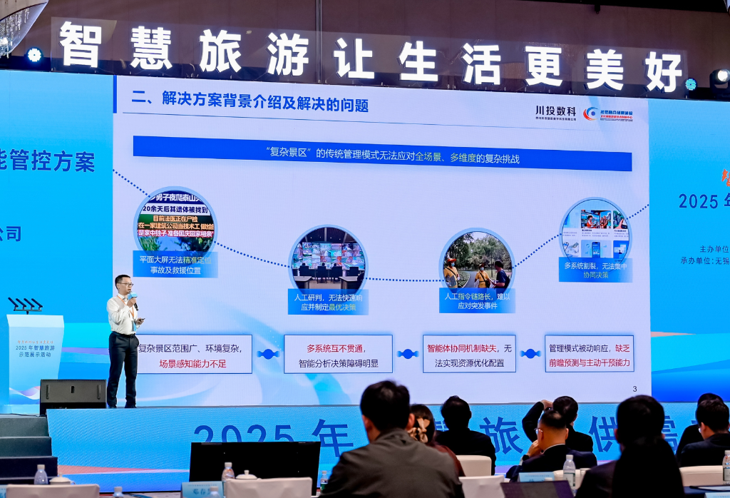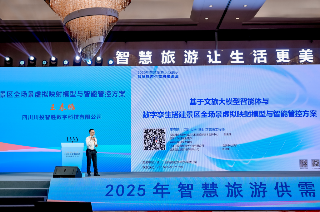 10月28日至29日,由文化和旅游部資源開發(fā)司與江蘇省文化和旅游廳、無錫市人民政府共同主辦的“2025年智慧旅游示范展示活動”在江蘇無錫隆重舉行。作為智慧旅游領(lǐng)域的年度盛會,本次活動以“智慧旅游讓生活更美好”為主題,展示智慧旅游發(fā)展成果,推動示范引領(lǐng)和供需對接,進(jìn)一步推動《智慧旅游創(chuàng)新發(fā)展行動計劃》落地見效。四川川投智勝數(shù)字科技有限公司(以下簡稱“川投數(shù)科”)憑借“基于文旅大模型智能體與數(shù)字孿生的景區(qū)全場景虛擬映射模型與智能管控方案”,再次驚艷亮相,成為行業(yè)焦點(diǎn)。作為四川能源發(fā)展集團(tuán)旗下所屬川投信息產(chǎn)業(yè)集團(tuán)有限公司控股的技術(shù)型領(lǐng)軍企業(yè),川投數(shù)科連續(xù)三年受邀參會,其路演的創(chuàng)新實(shí)踐案例獲得了專家團(tuán)隊(duì)高度認(rèn)可,成為行業(yè)標(biāo)桿案例。